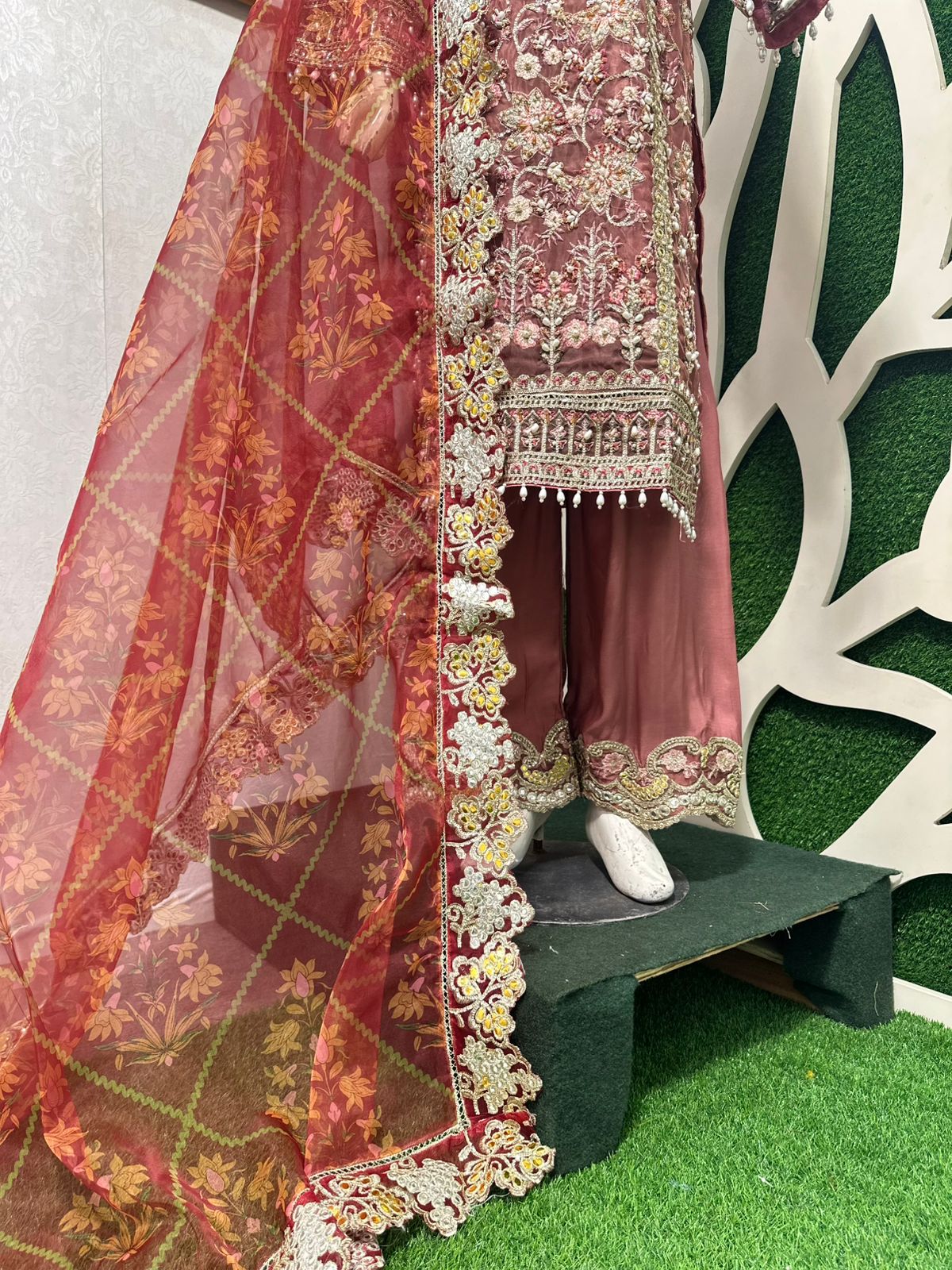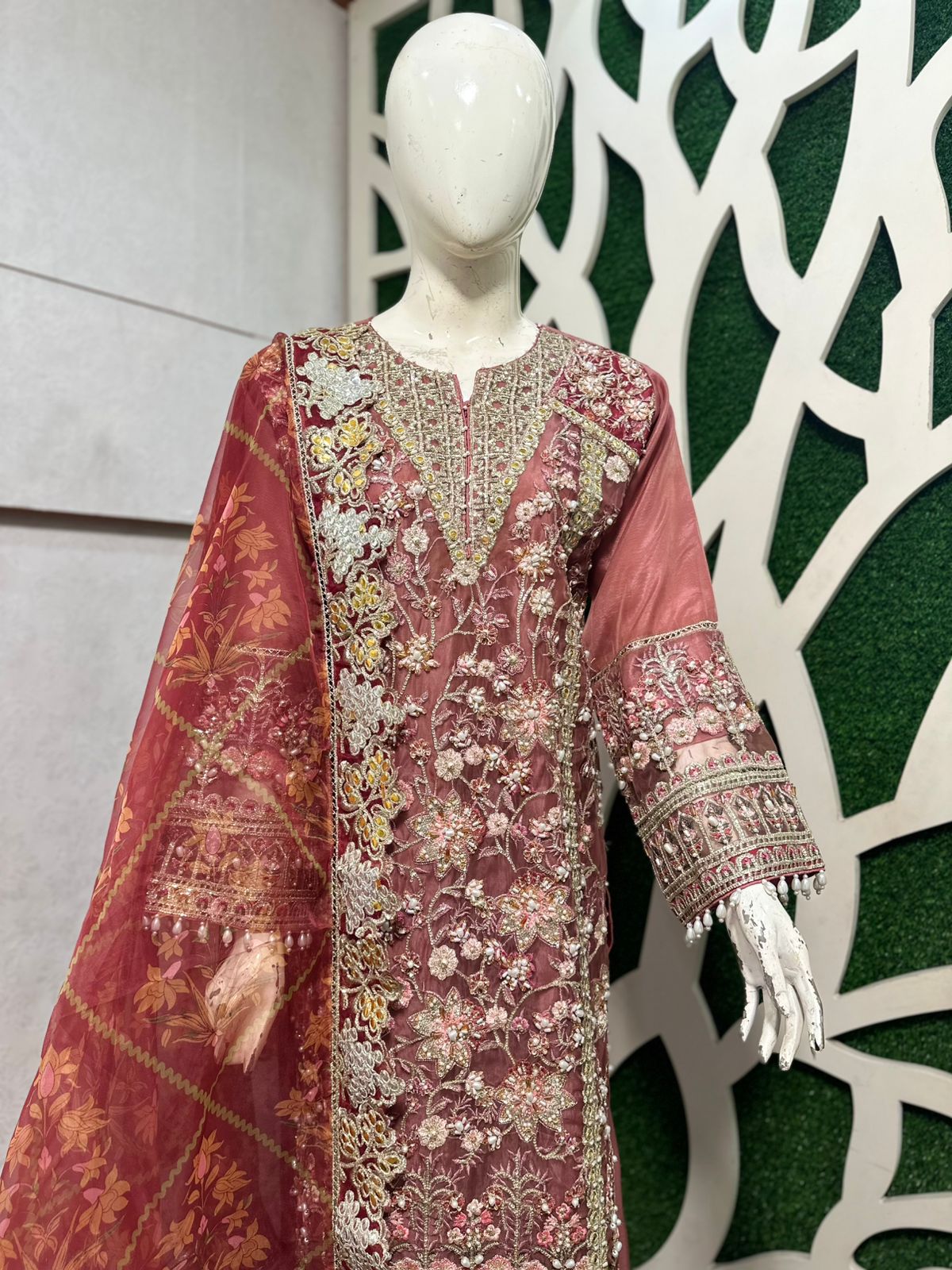 ORGANZA FABRIC TOTALLY HANDMADE WORK ON IT.